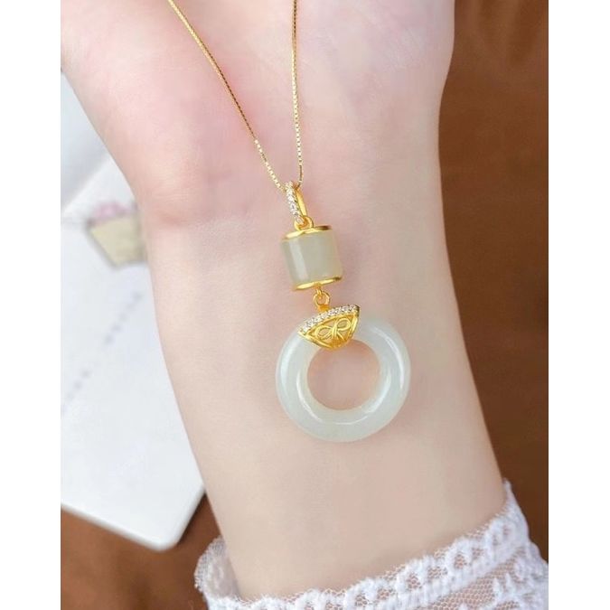天然白玉葫蘆925銀鎏金項鍊🌸