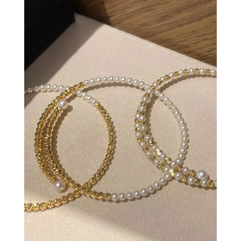 18k金鐳射珠碎金珍珠手鐲