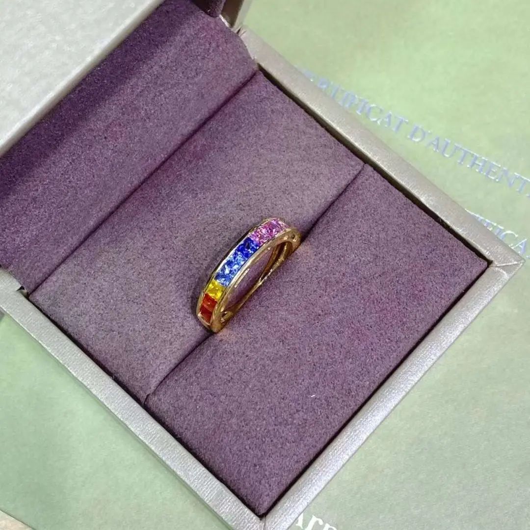 天然斯裏蘭卡彩色藍寶石18k金排戒指