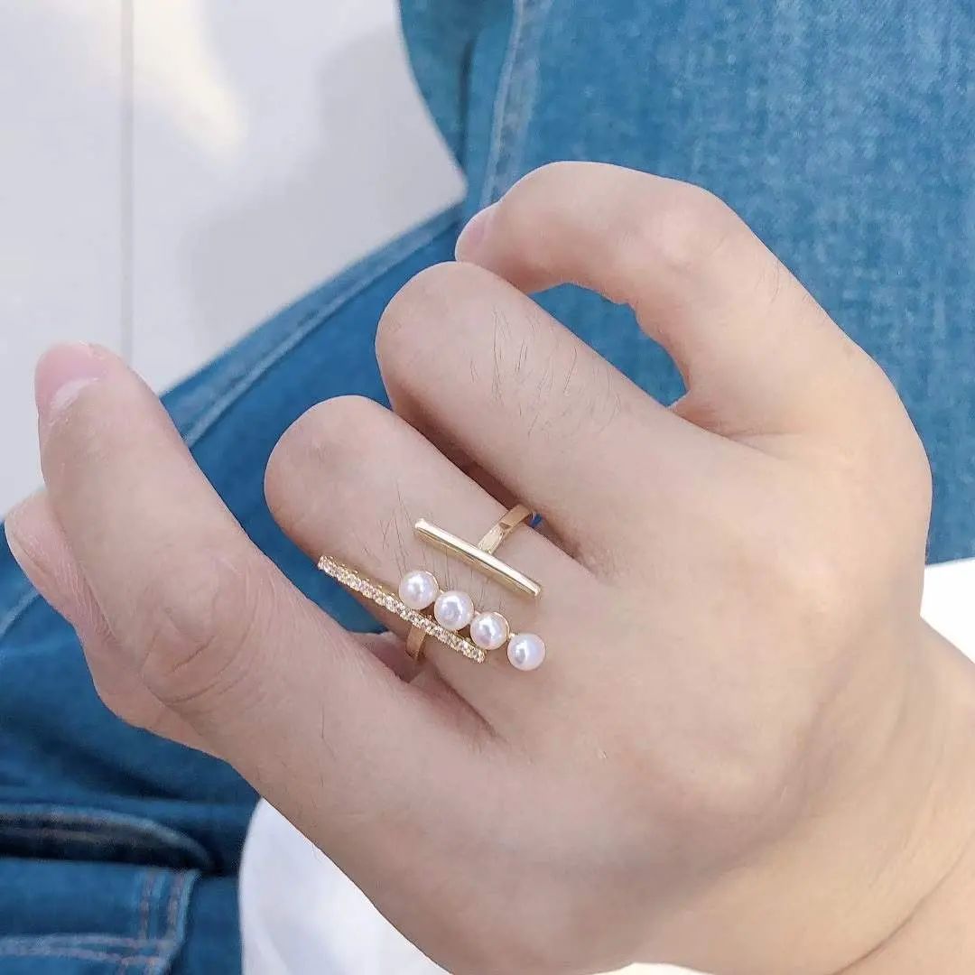 天然淡水珍珠饅頭14k包金。平衡木戒指