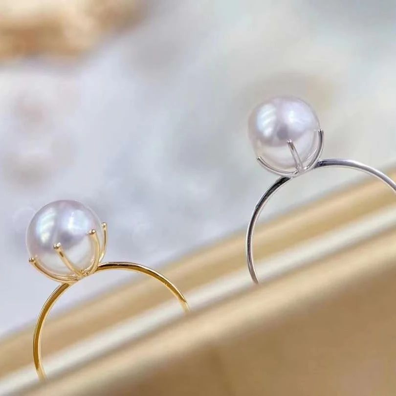 天然日本akoya海水珍珠經典風格六爪18k金戒指