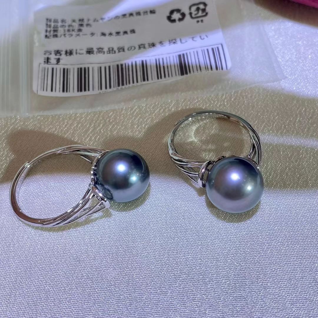 天然akoya灰色(冇調色)海水珍珠925銀皇冠戒指