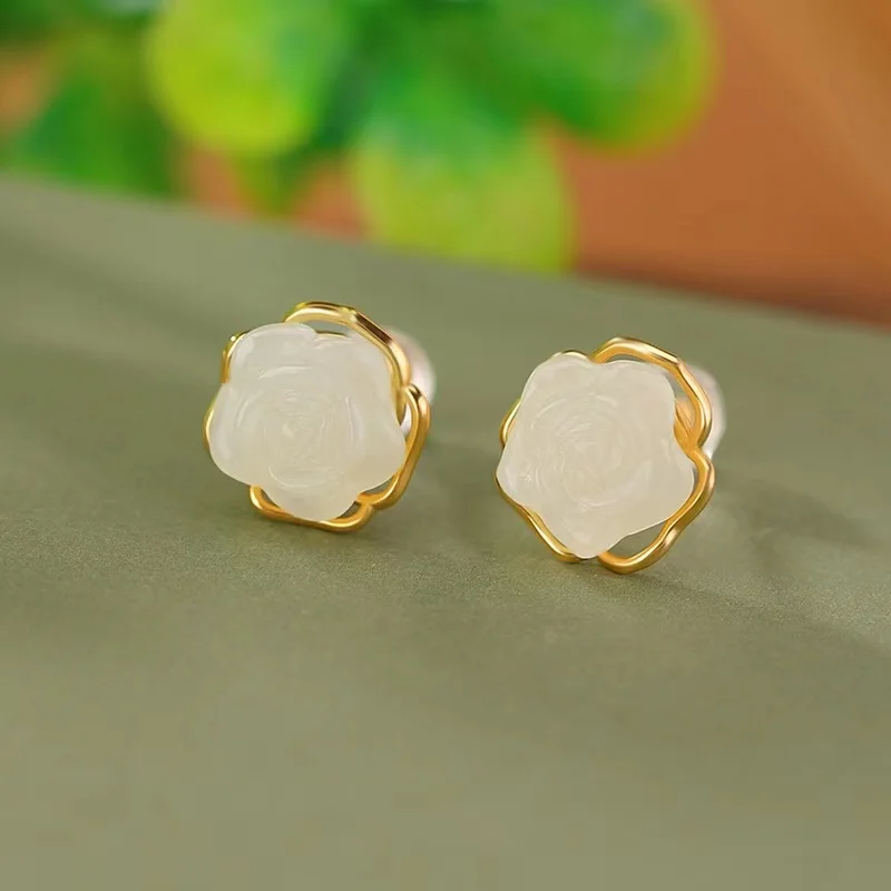 復古輕奢玫瑰花鏤空耳釘