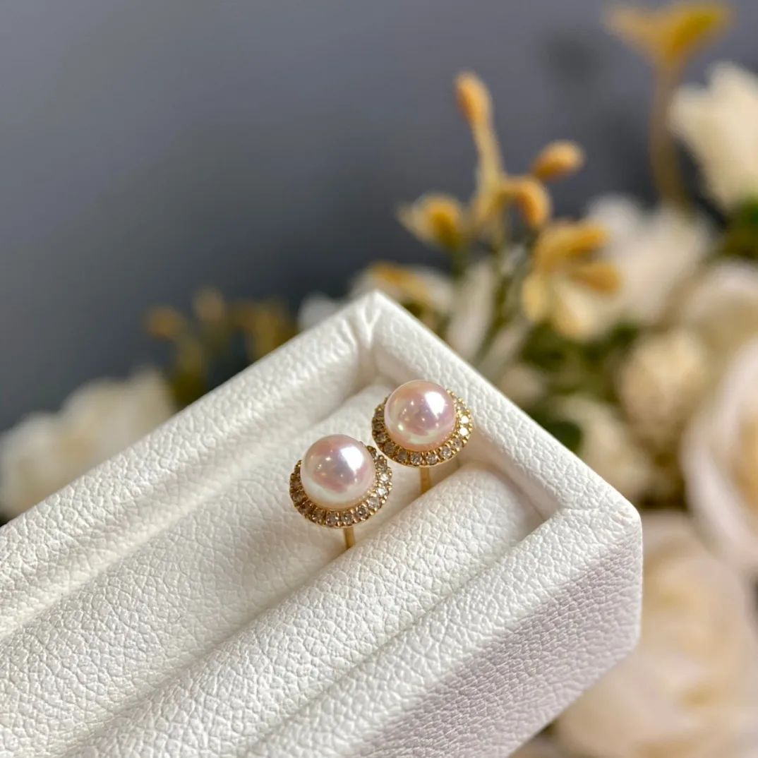 8-9mm日本海水珍珠akoya 強光正圓基本無瑕18k金耳環