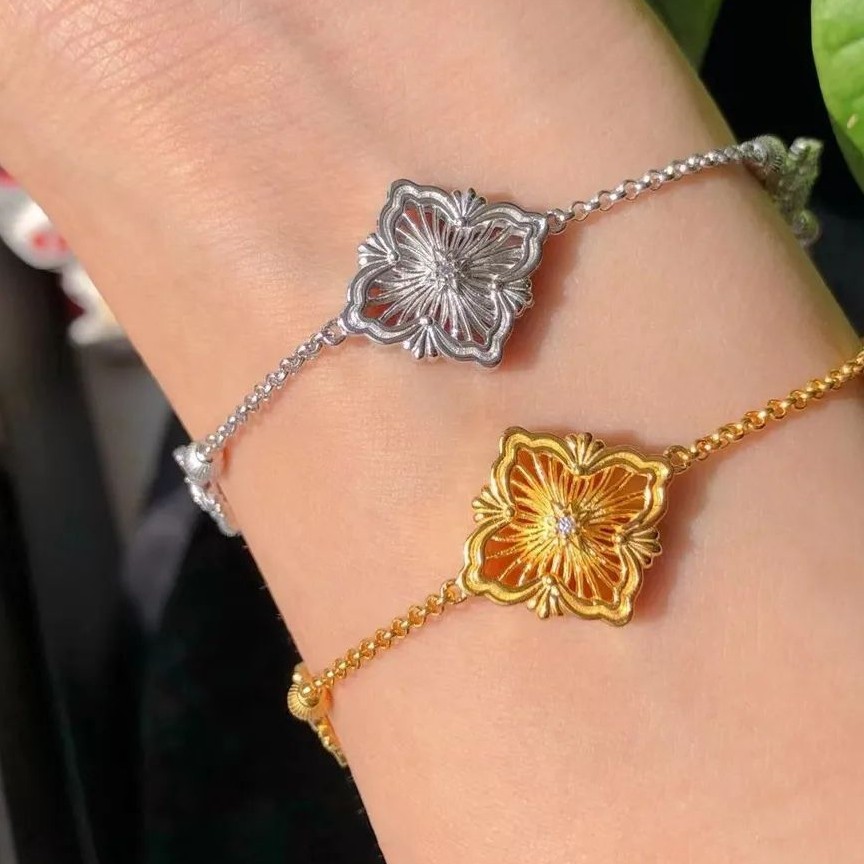 925金鎏金拉絲四葉鏤空手鏈