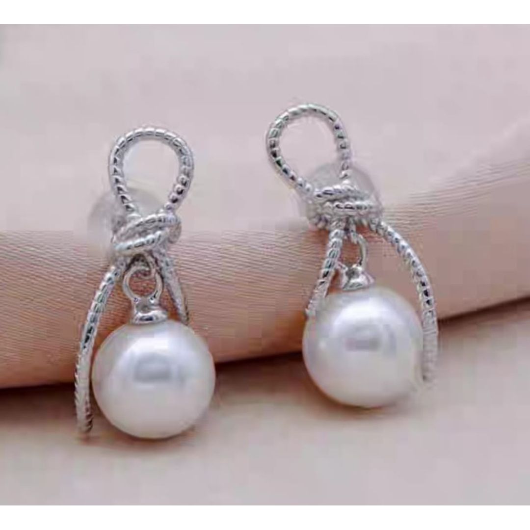天然高光akoya珍珠日本925銀蝴蝶結耳環