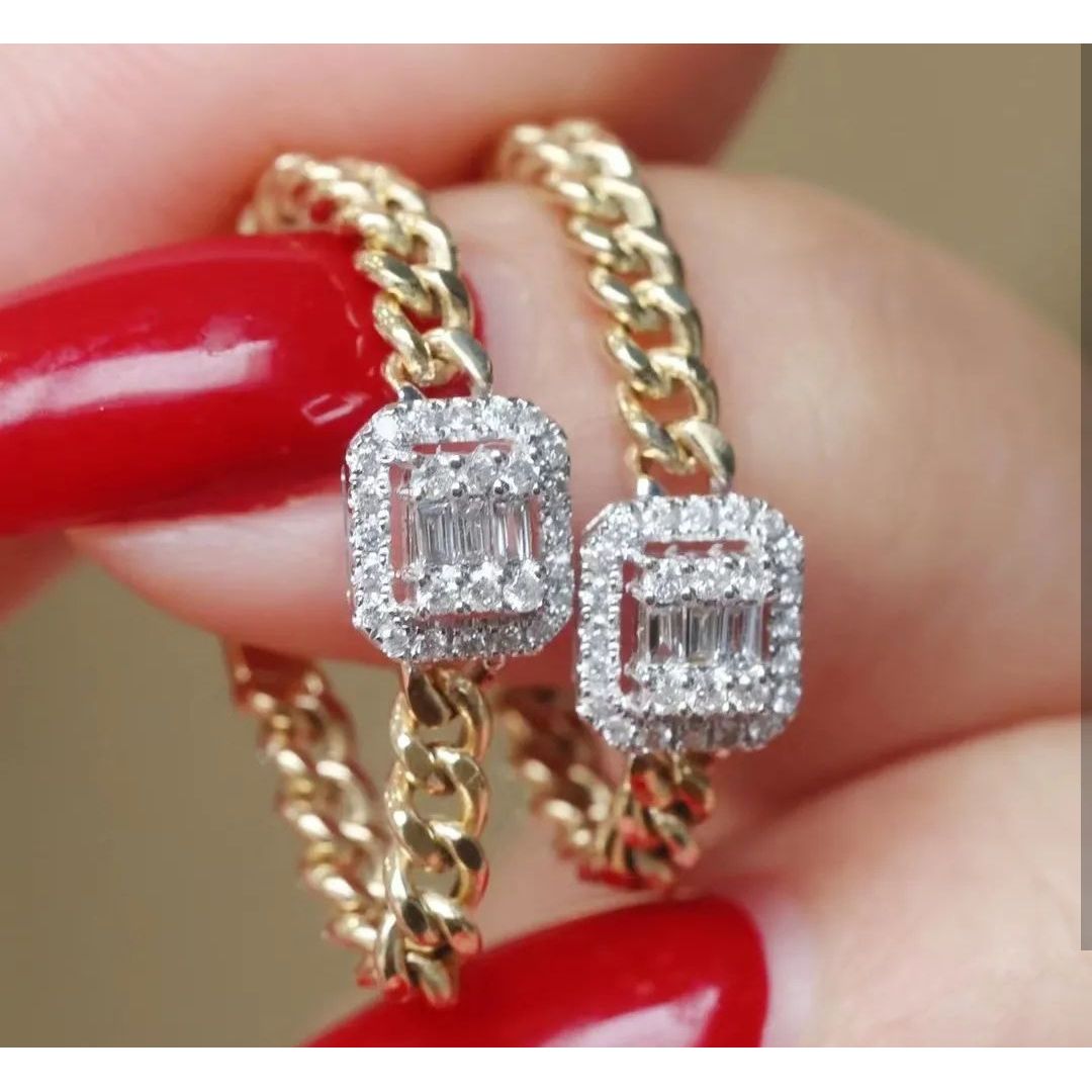 天然 鑽石 拼接 18k 金古巴鏈戒指