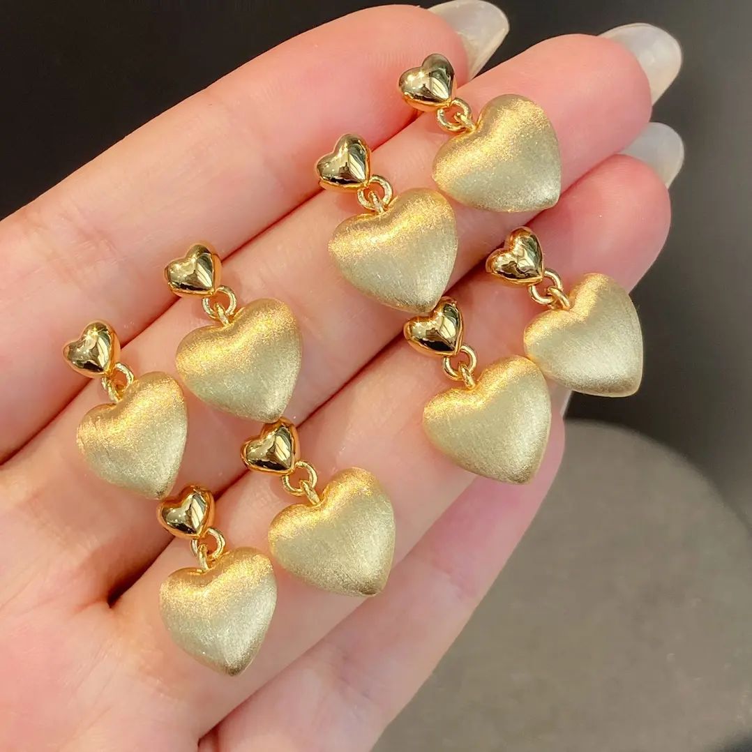 純手工拉絲愛心耳環 18k