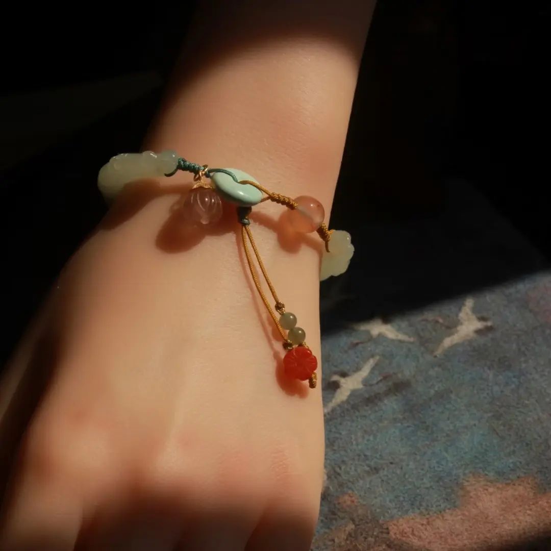 原礦綠鬆平安扣、冰橙南紅老型珠