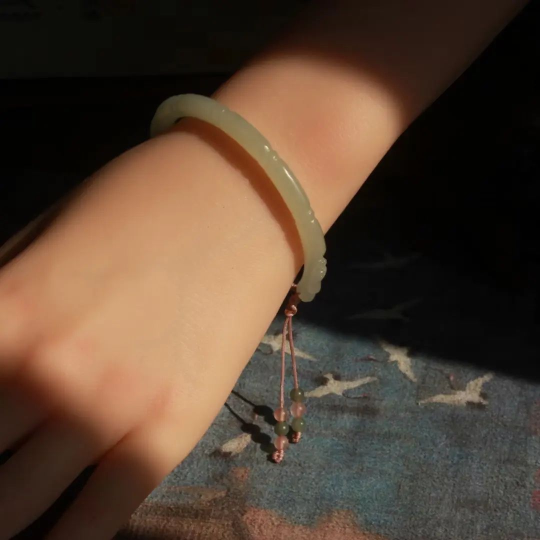 「和田玉手鐲,晴水竹節開口鐲」