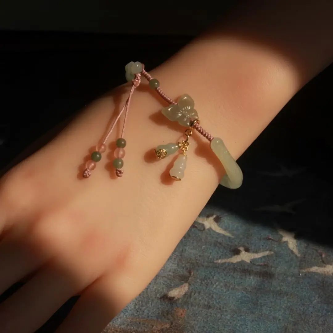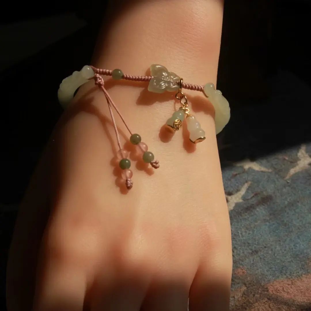 和田玉蝴蝶、和田玉+南紅提溜珠、手工編繩