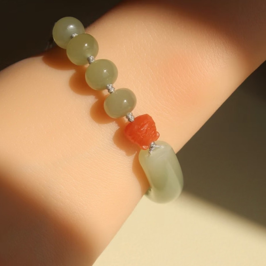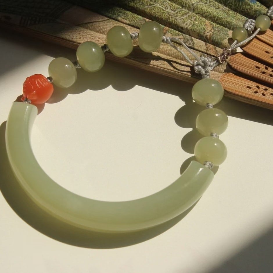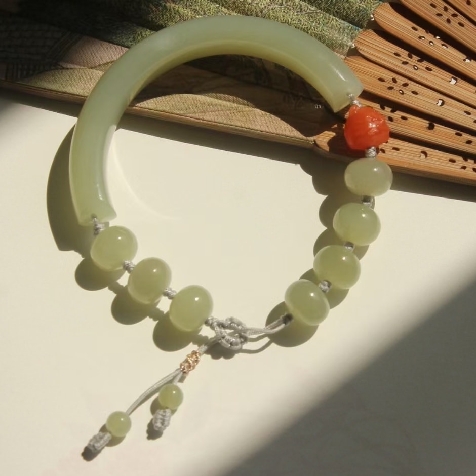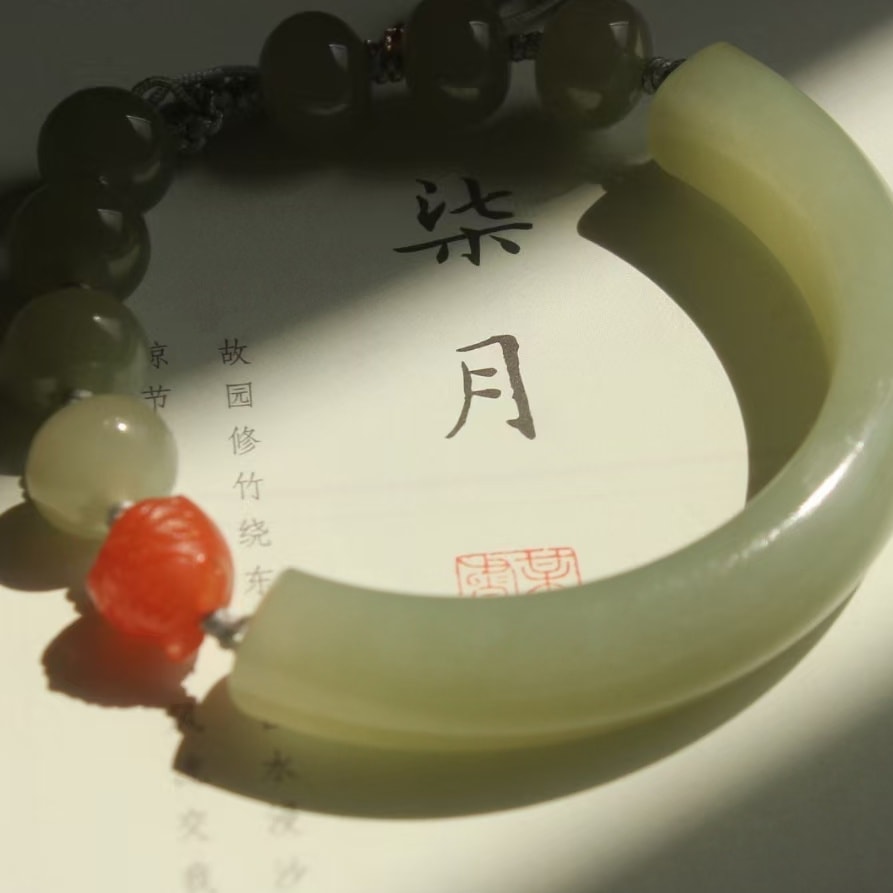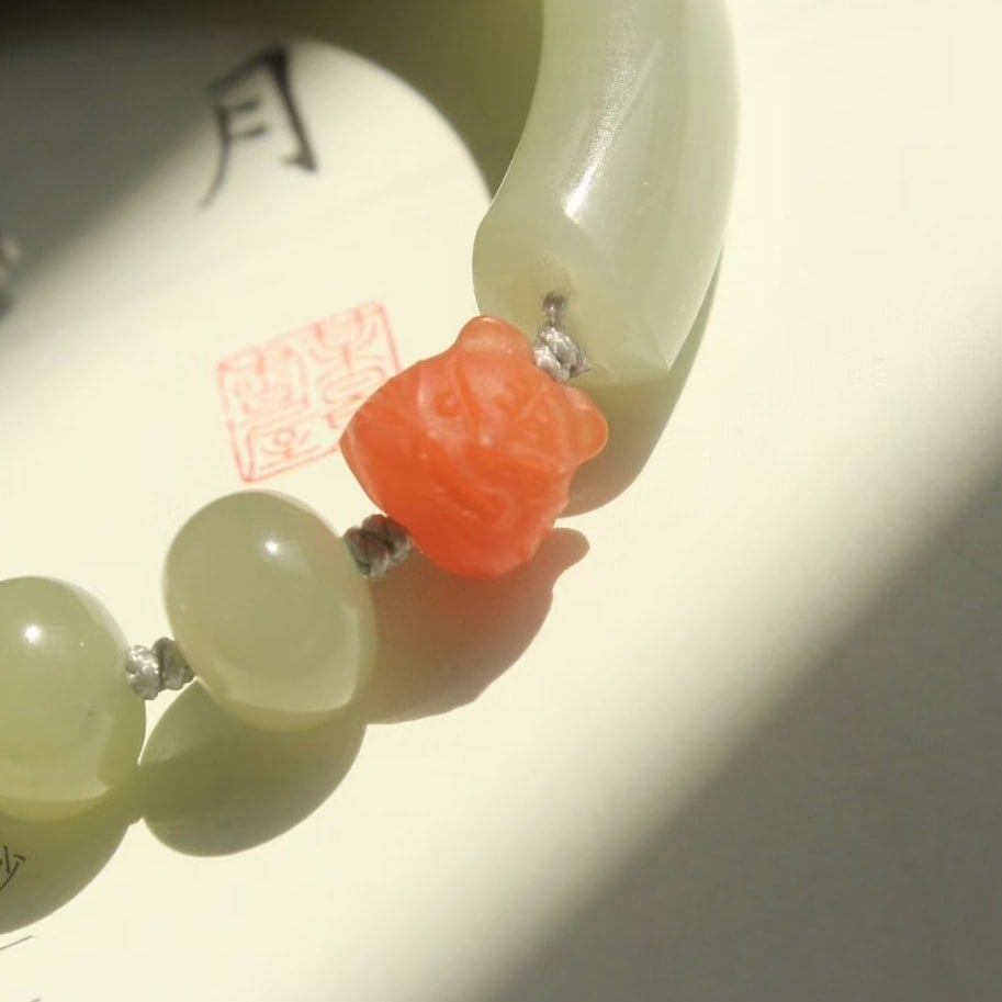 天然和田玉手鐲,半鐲半鏈。 尺寸約:11*8mm,適合手腕16cm內。 【其他尺寸可以訂製】。 材質:晴水和田玉半鐲、南紅老虎頭、晴水和田玉算盤珠、和田玉提溜珠、手工編繩。 — hkd$1200,包順豐,證書 —— 保證a貨 如假包退。 我哋有證書,支持任何形式嘅复檢 可以代出香港證書+250 — —————— #翡翠#翡翠手串#A玉#a貨翡翠#a貨保證#a玉#a貨保證#a貨翡翠#玉器#玉#玉器首飾#翡翠 #翡翠耳墜 #天然翡翠a貨 #hkjewelleryshop #天然玉器#翡翠戒指 #豆青#真水晶#天然翡翠#真天然水晶#18k金翡翠#珠寶首飾#首飾#天然翡翠a玉 #硬玉翡翠 #hkjewelry #hkjewellery #珠寶#首飾#天然翡翠 #a貨翡翠 #消費券 #a貨緬甸玉 #玉#玉石 # #a玉 #A玉#緬甸玉