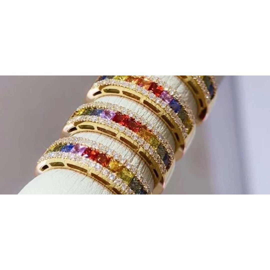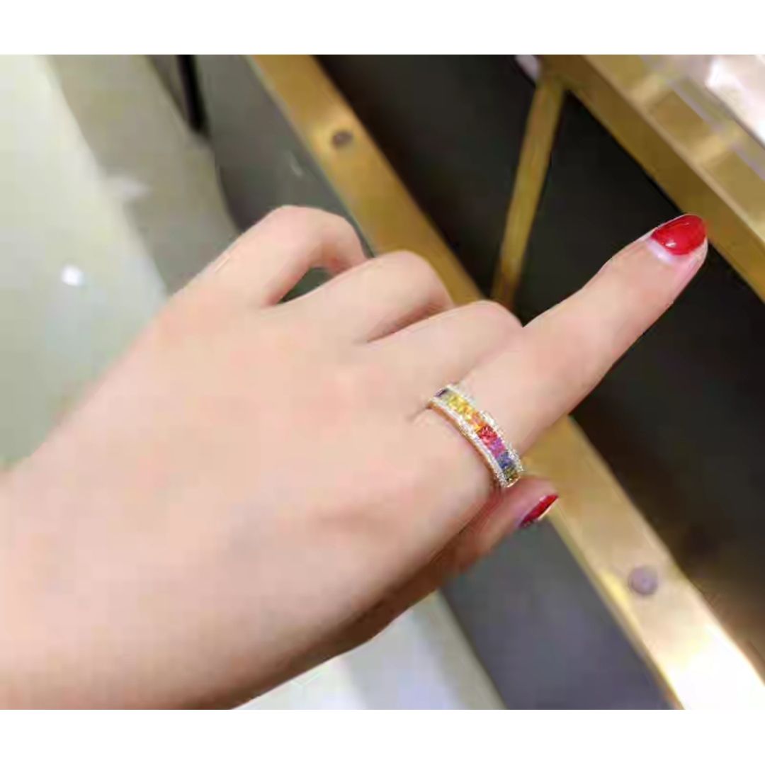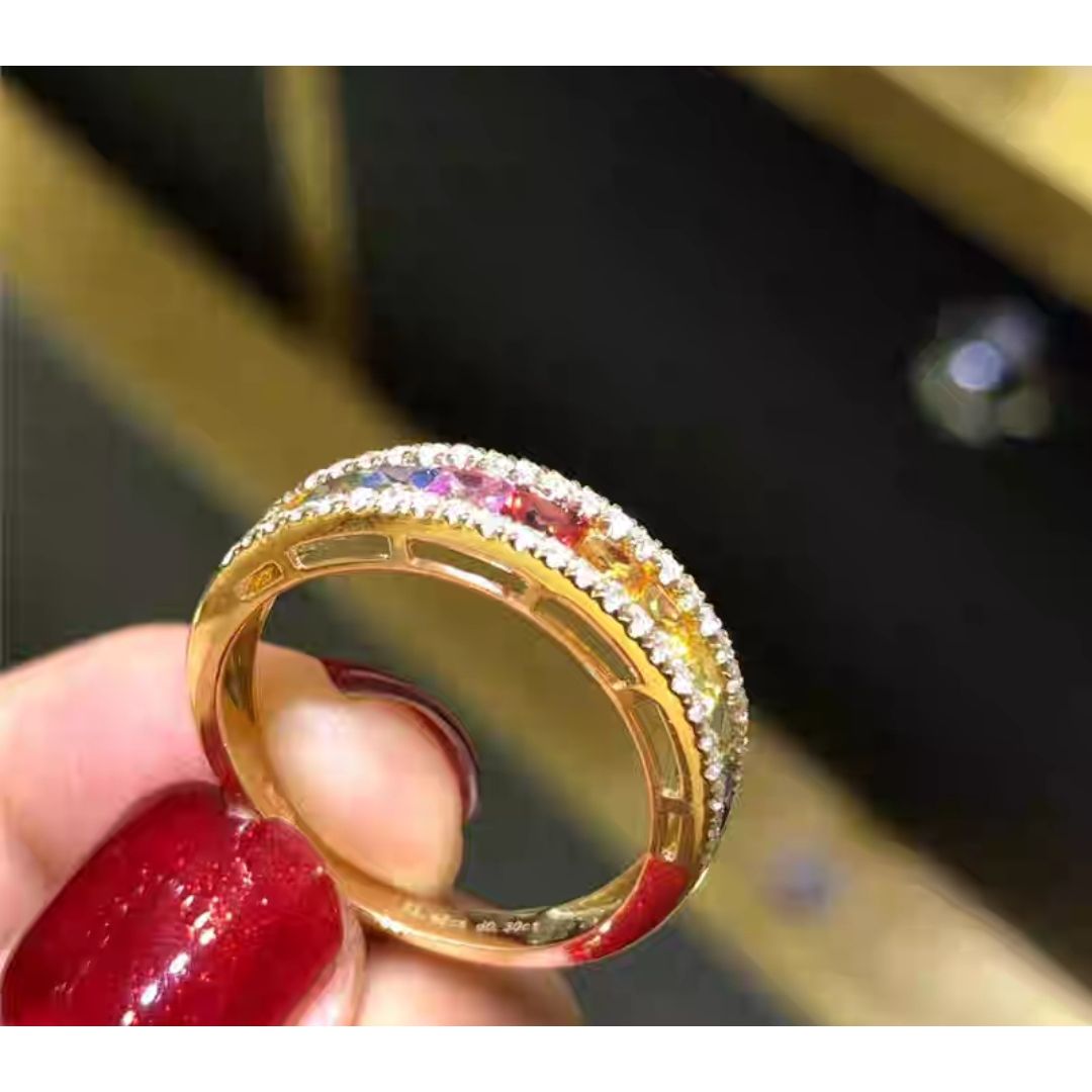 天然斯裏蘭卡彩色藍寶石18k金鑽石排戒指