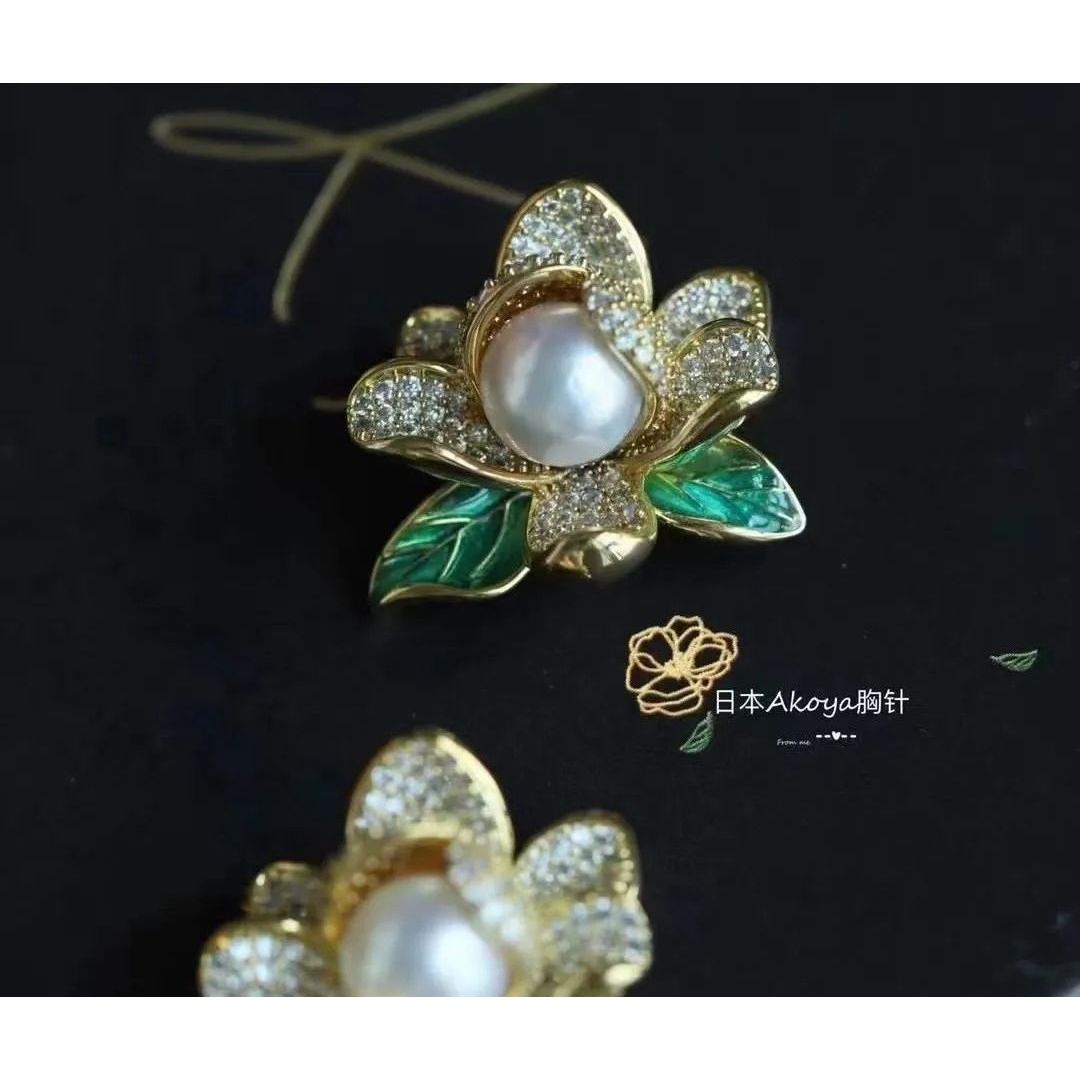 天然海水akoya正圓白色珍珠14k包金山茶花胸針。 —— —— 天然海水akoya珍珠,正圓,強光! 8-9mm √14k包金配件,琺琅彩葉子 — hkd$ 480 包證書同禮盒~仲包順豐。 本產品和任何品牌無關。