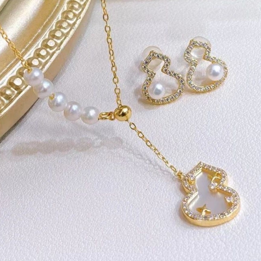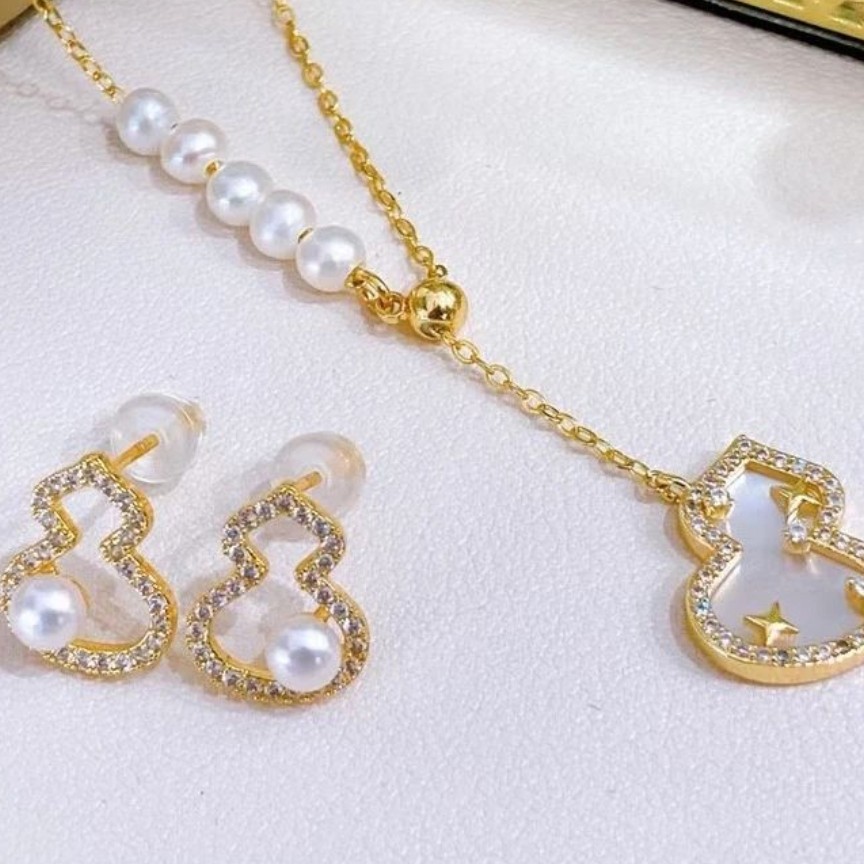 天然淡水珍珠14k包金葫蘆頸鏈/耳環 出口品牌原單 天然淡水珍珠,強光微睱 5-6.mm 鑲白貝母葫蘆 進口14k包金配件,非常結實 碰水不變色 特價一套共hkd$299 有證書同禮盒~仲包順豐。 網頁下單可以收消費劵~ 本產品和任何品牌無關。