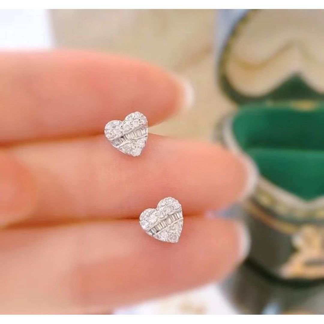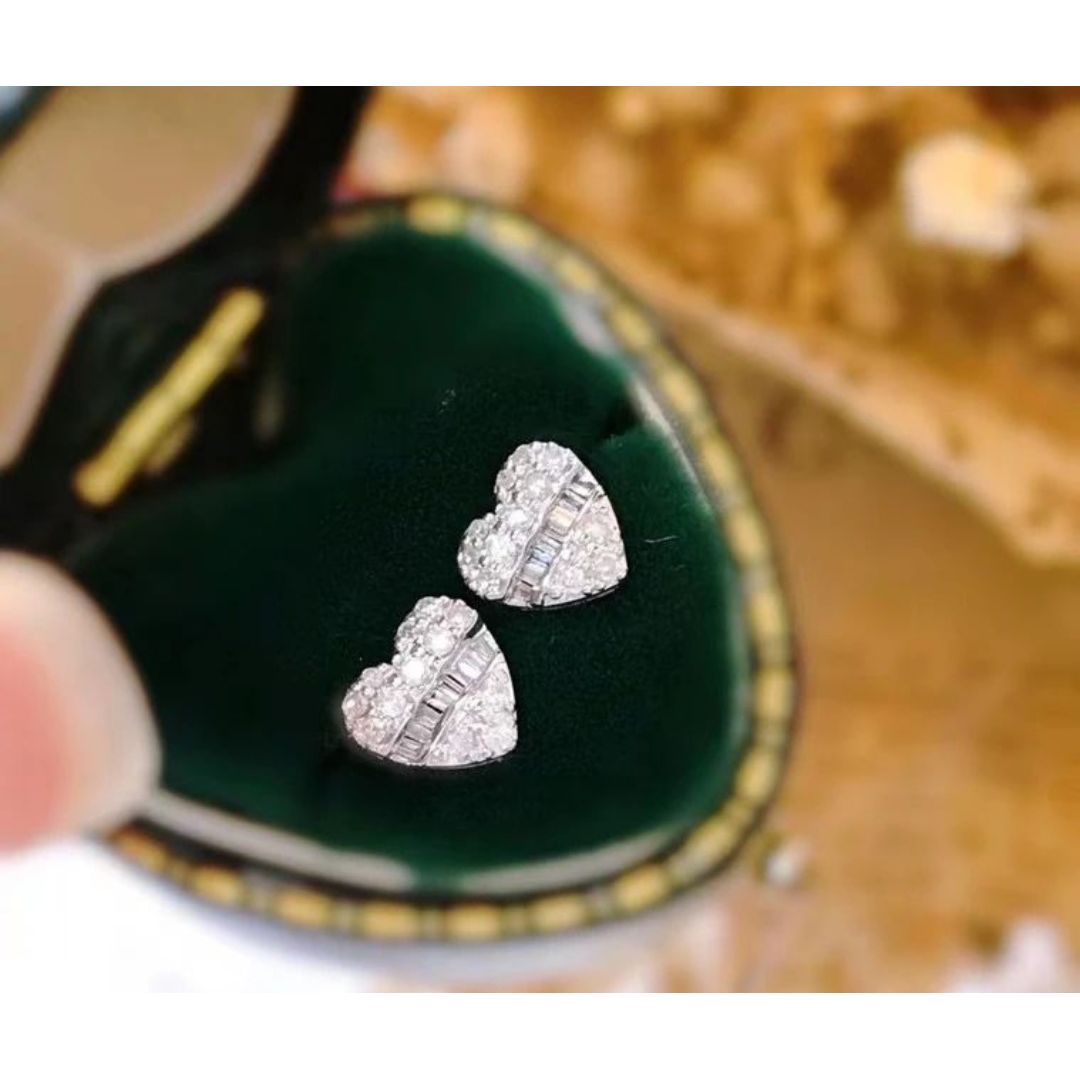 天然鑽石心形拼接18k白金耳環