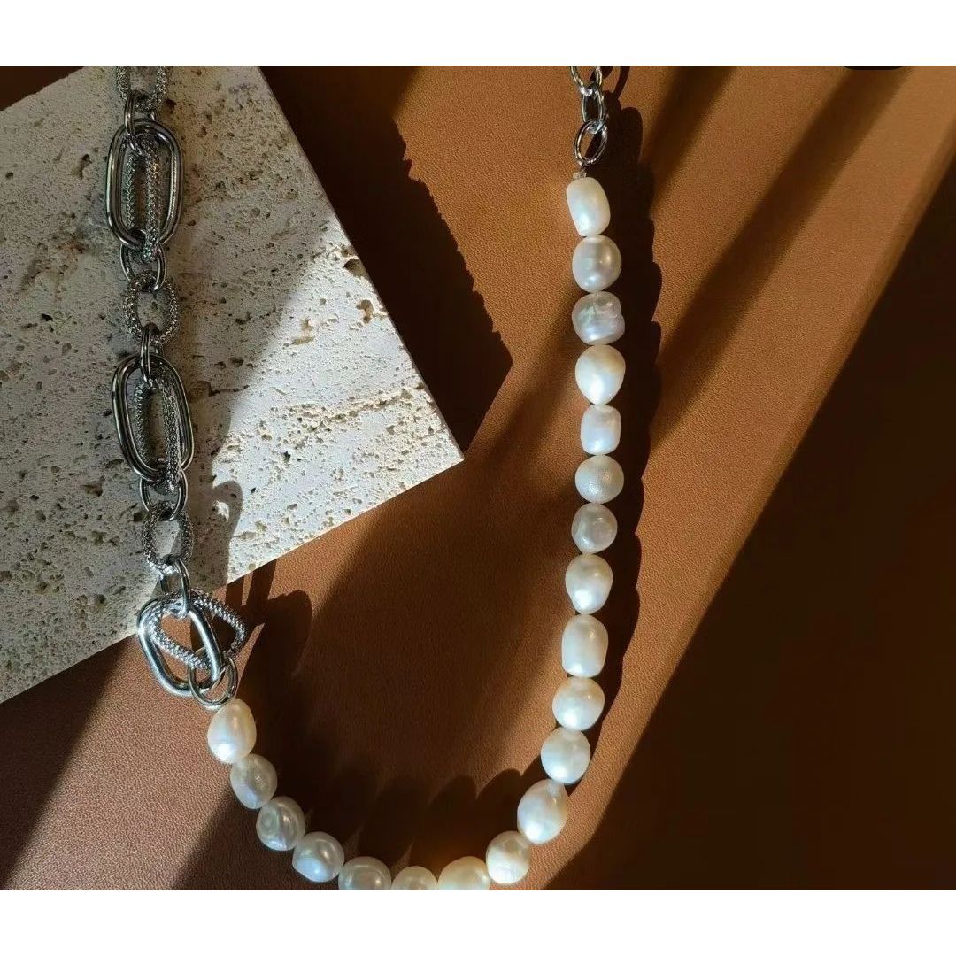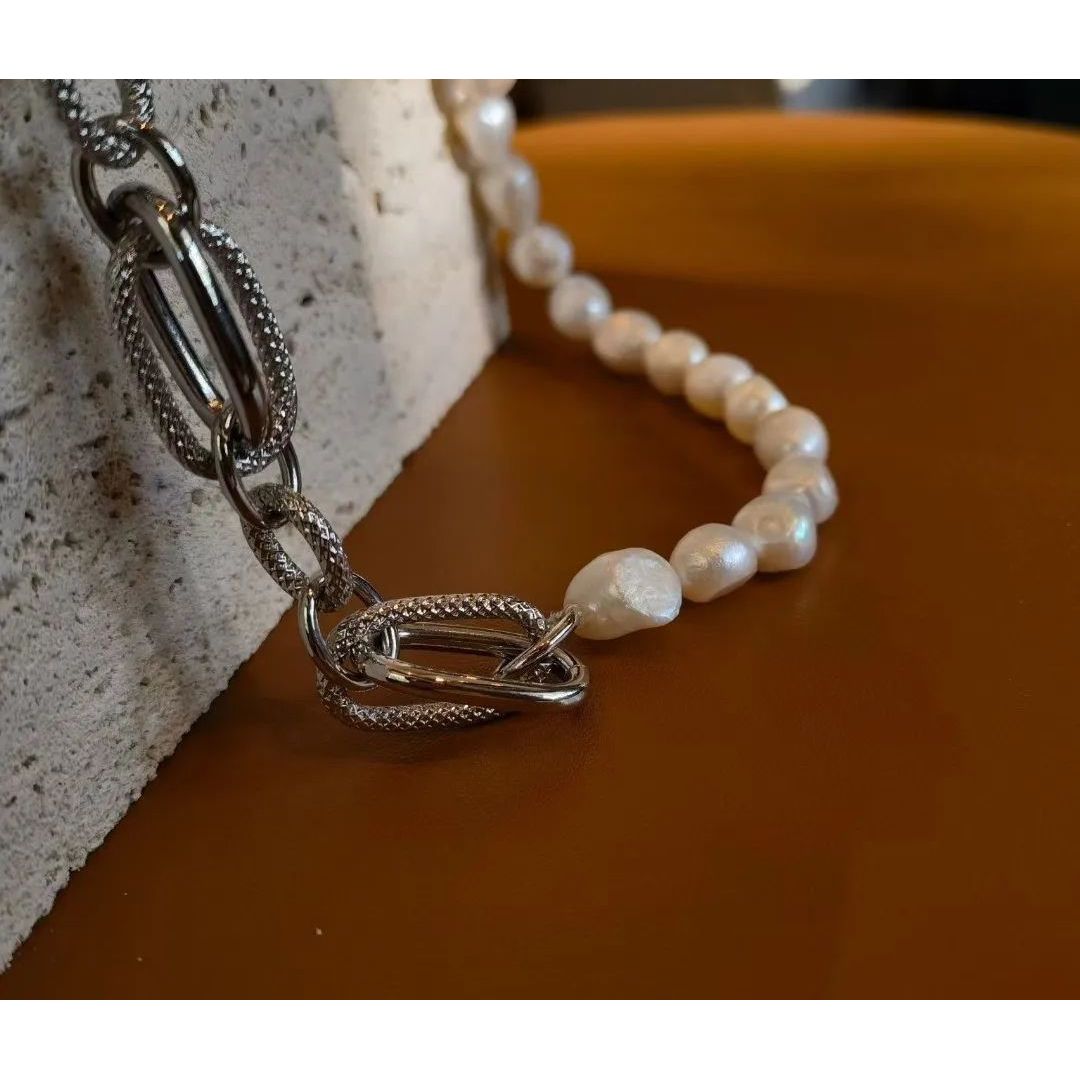 14k包金搖滾風格淡水珍珠頸鍊