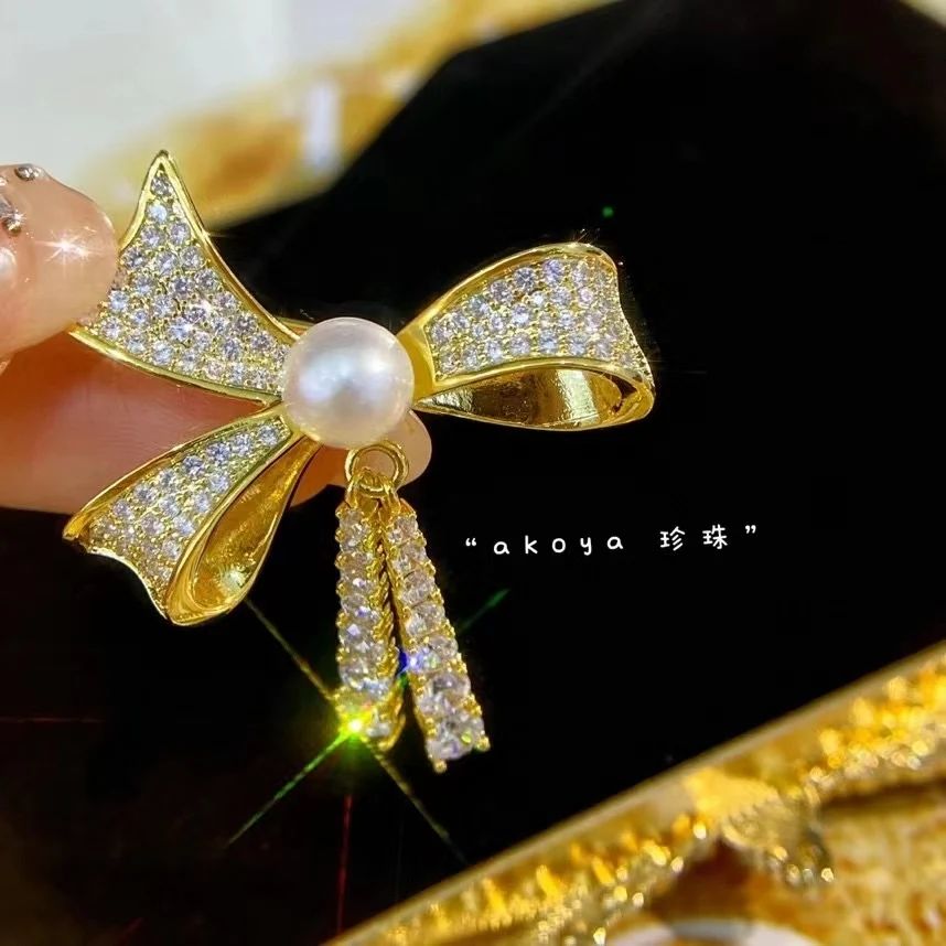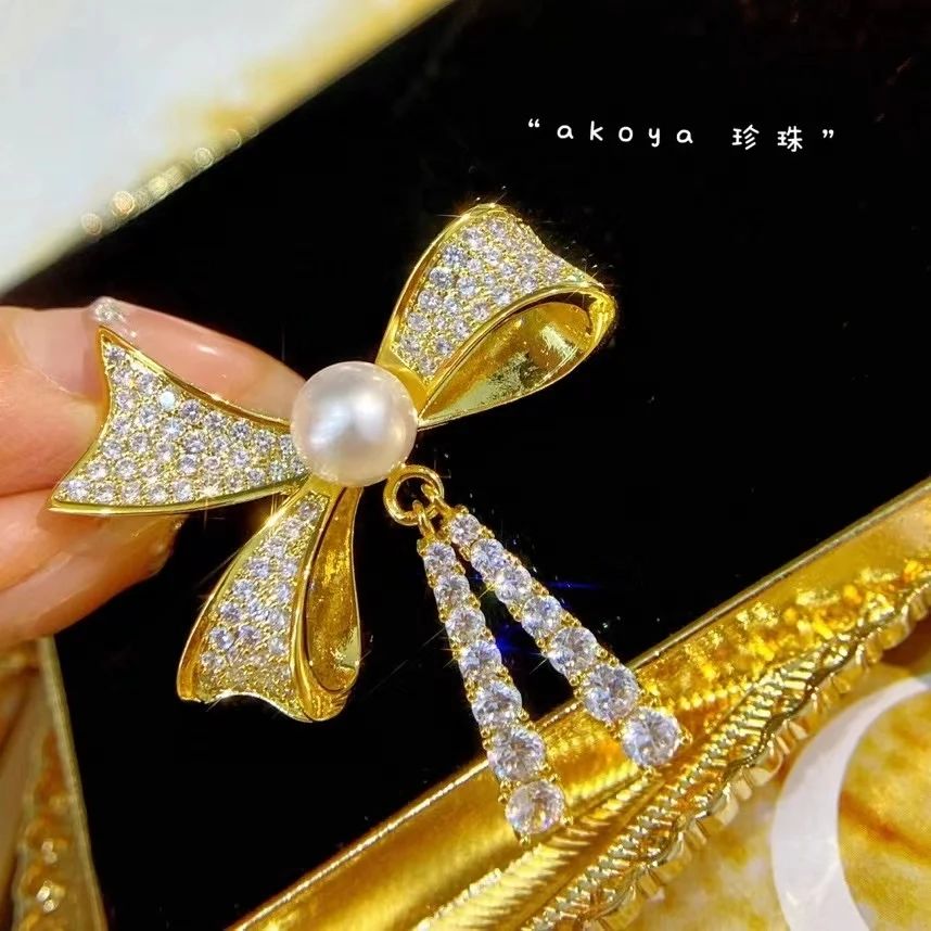 14k包金日本海水珍珠蝴蝶結胸針