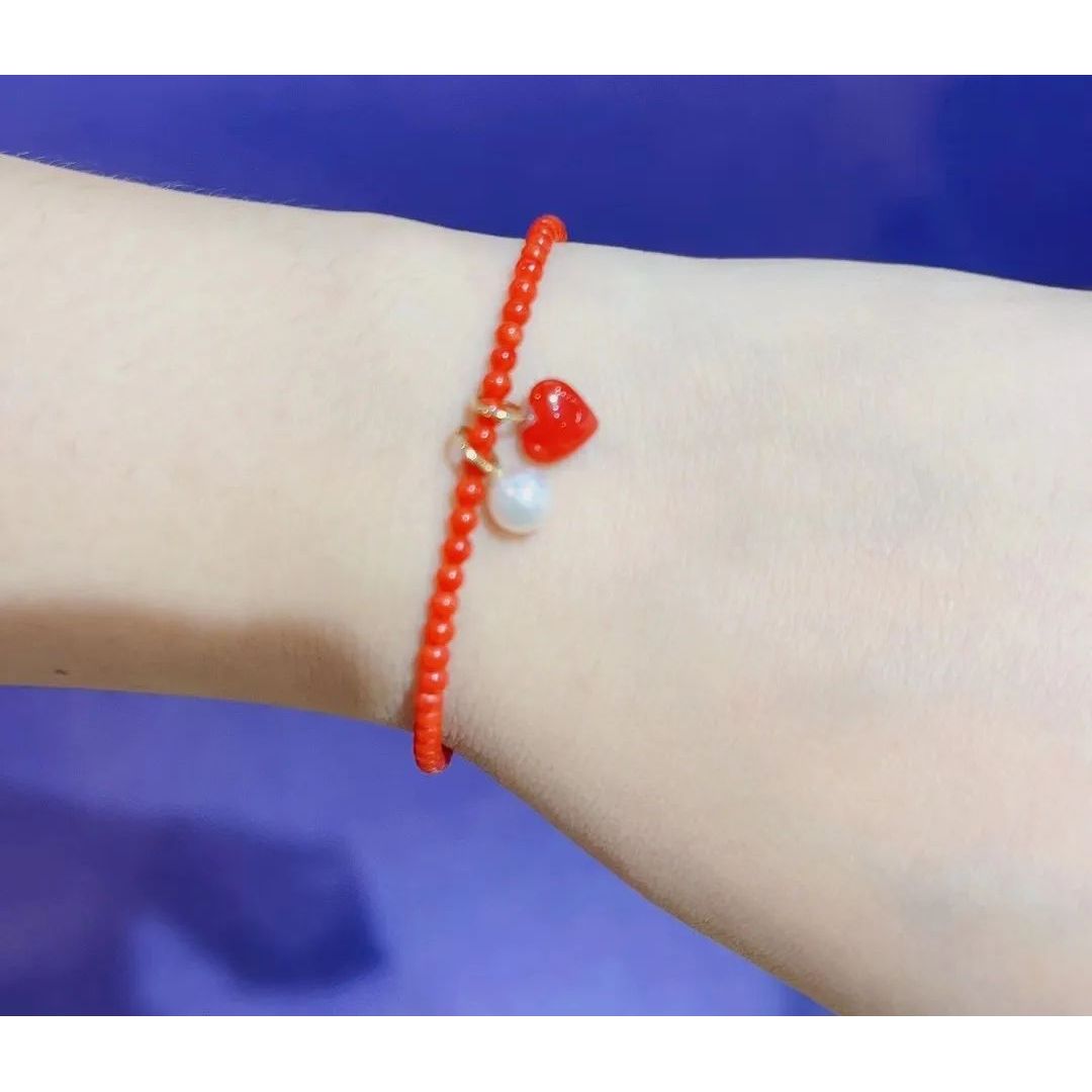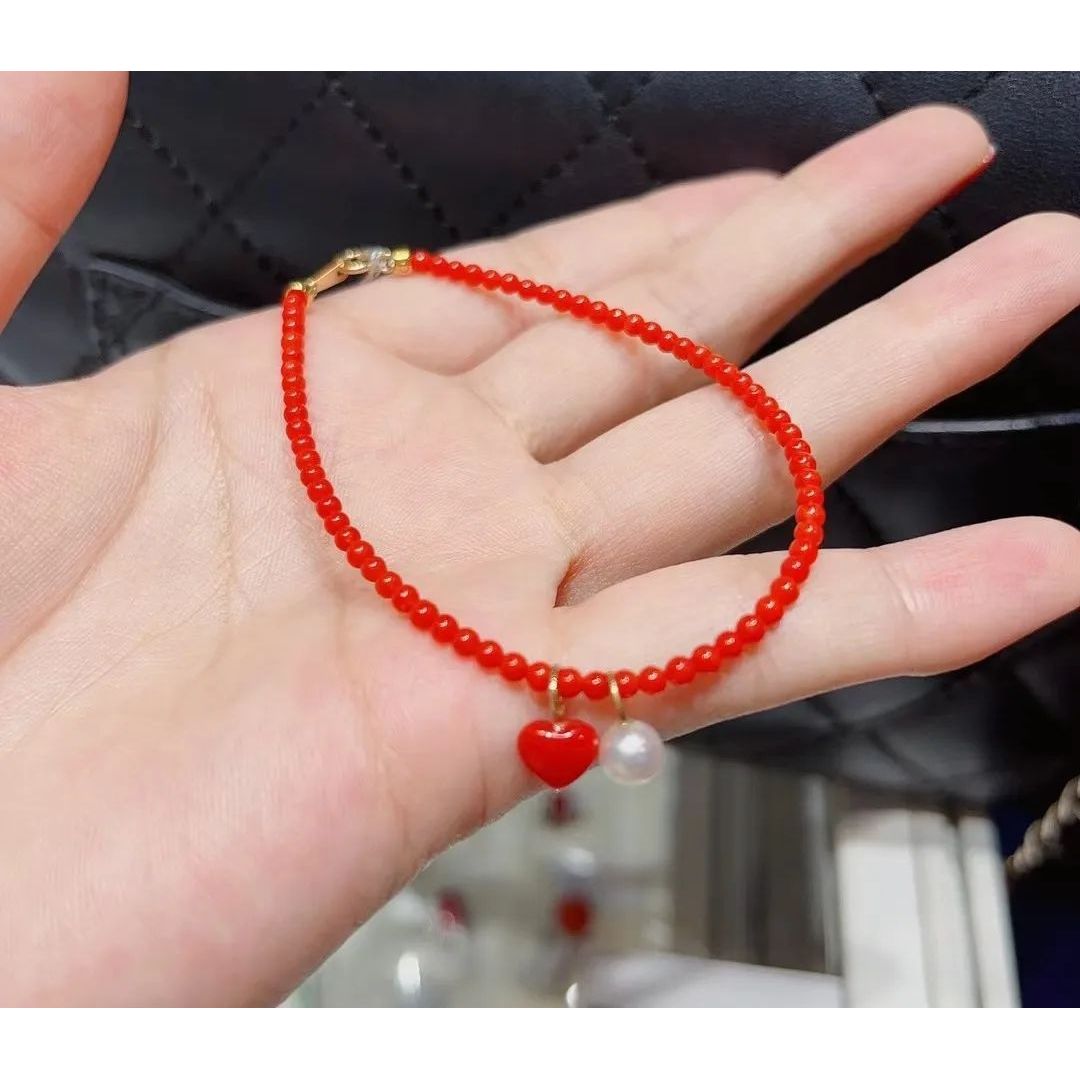 18k金天然意大利紅珊瑚愛心akoya手鏈