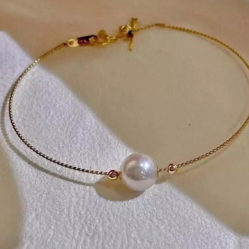 18k金天然正圓淡水珍珠手鏈