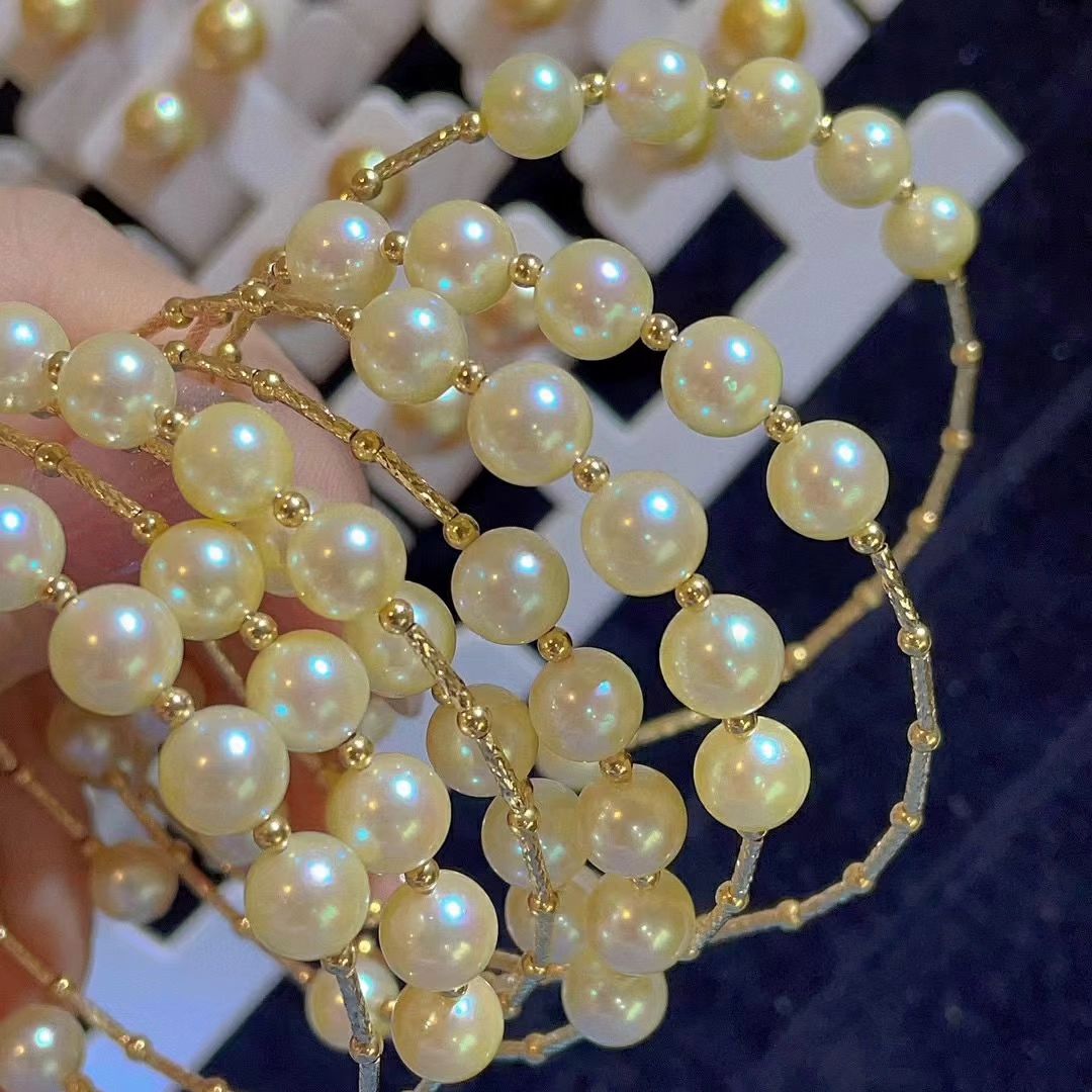 天然強光香檳金色日本海水akoya珍珠