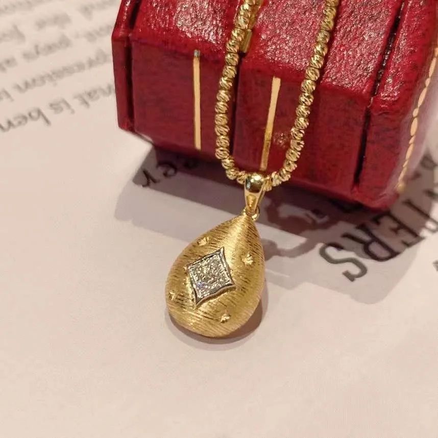 18k金磨砂拉絲鑽石水的復古吊墜。