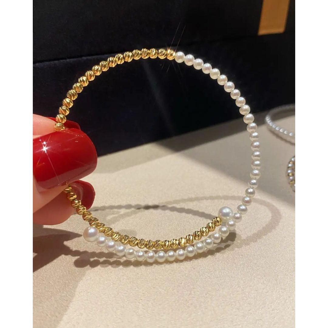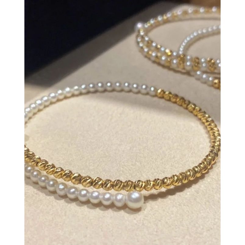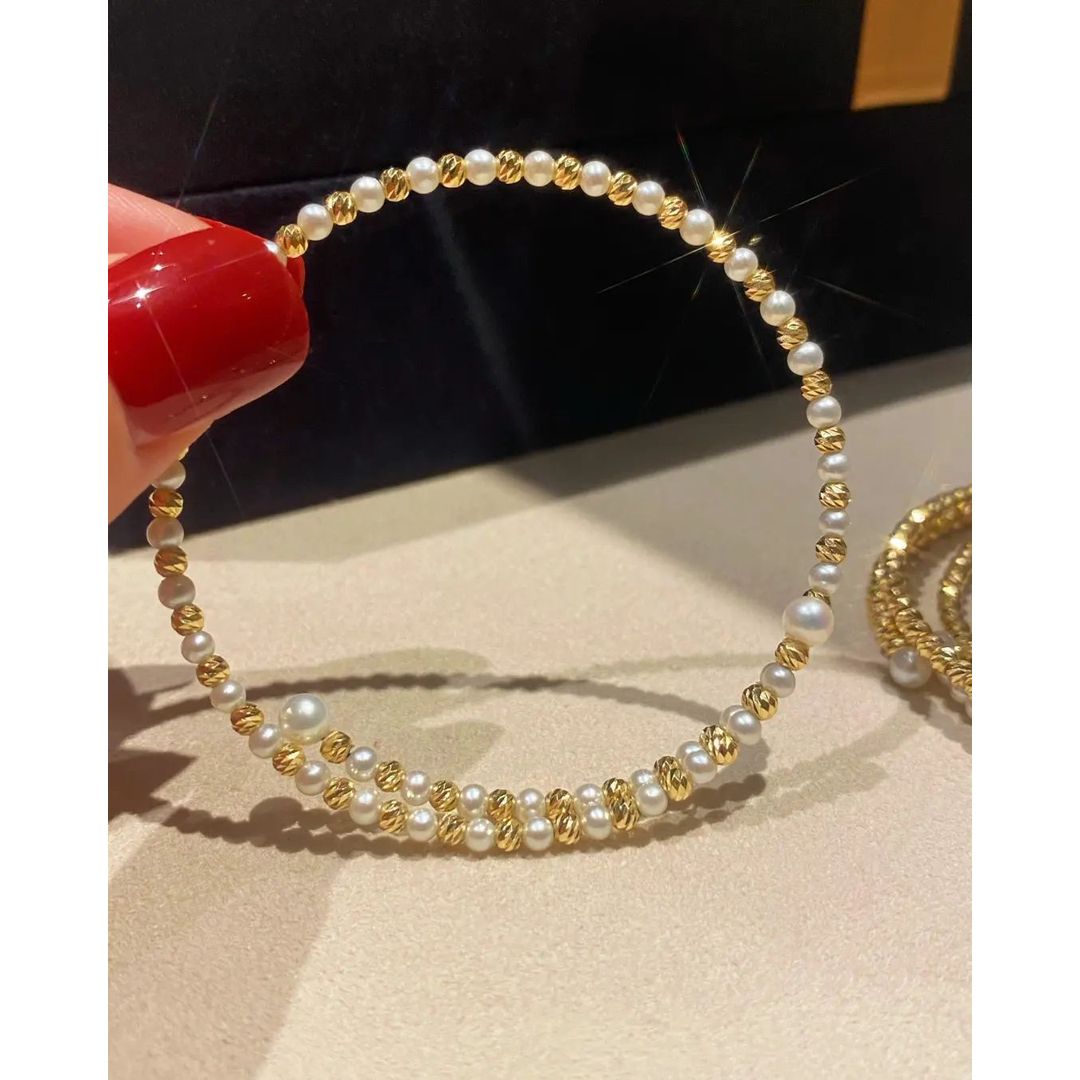 ♨️18k金鐳射珠碎金珍珠手鐲