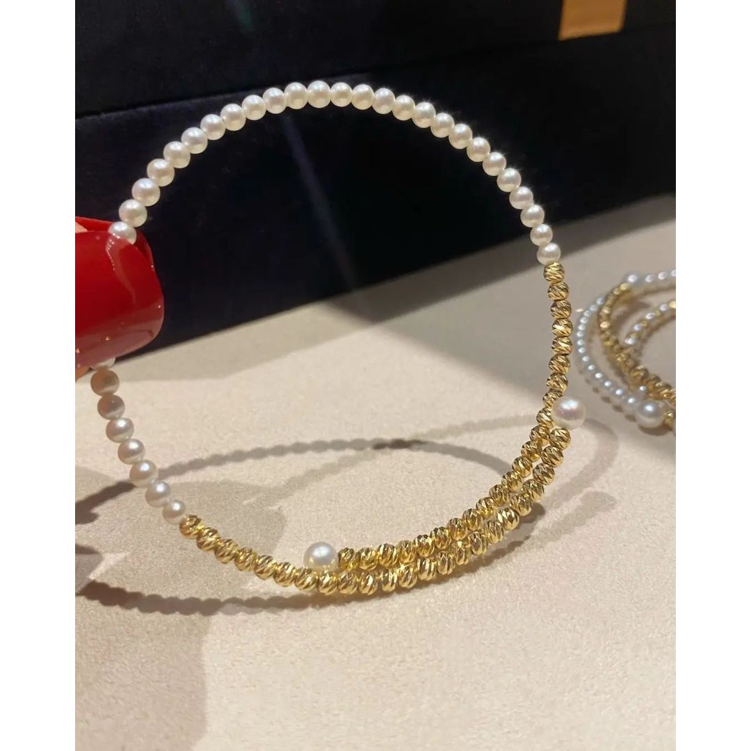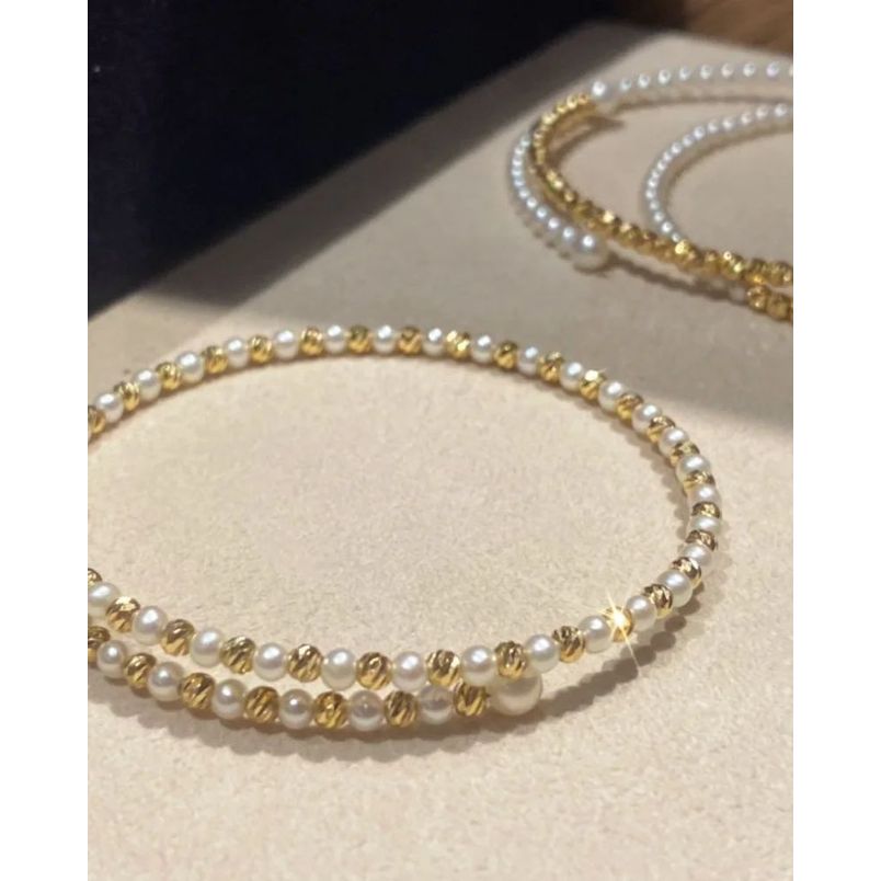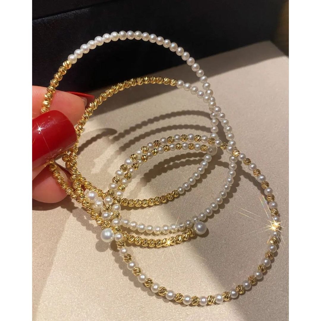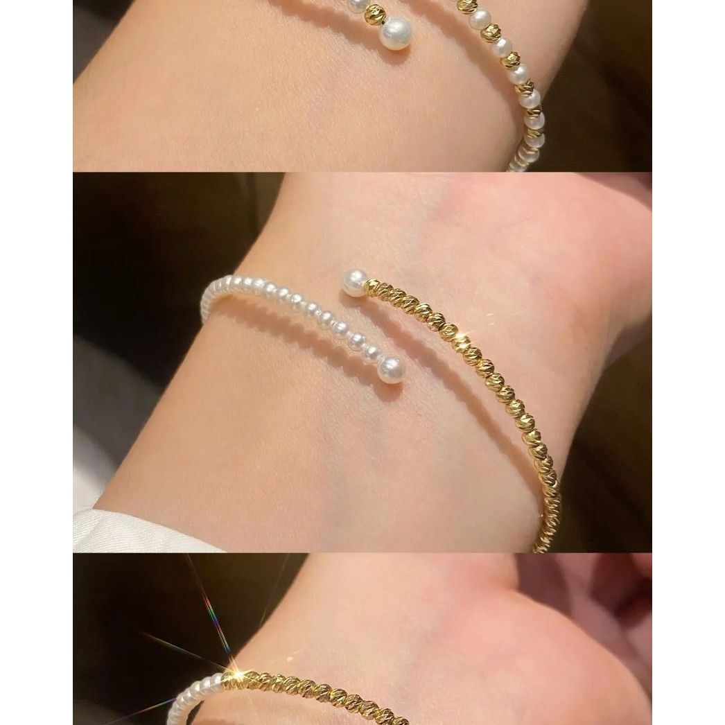 ♨️18k金鐳射珠碎金珍珠手鐲