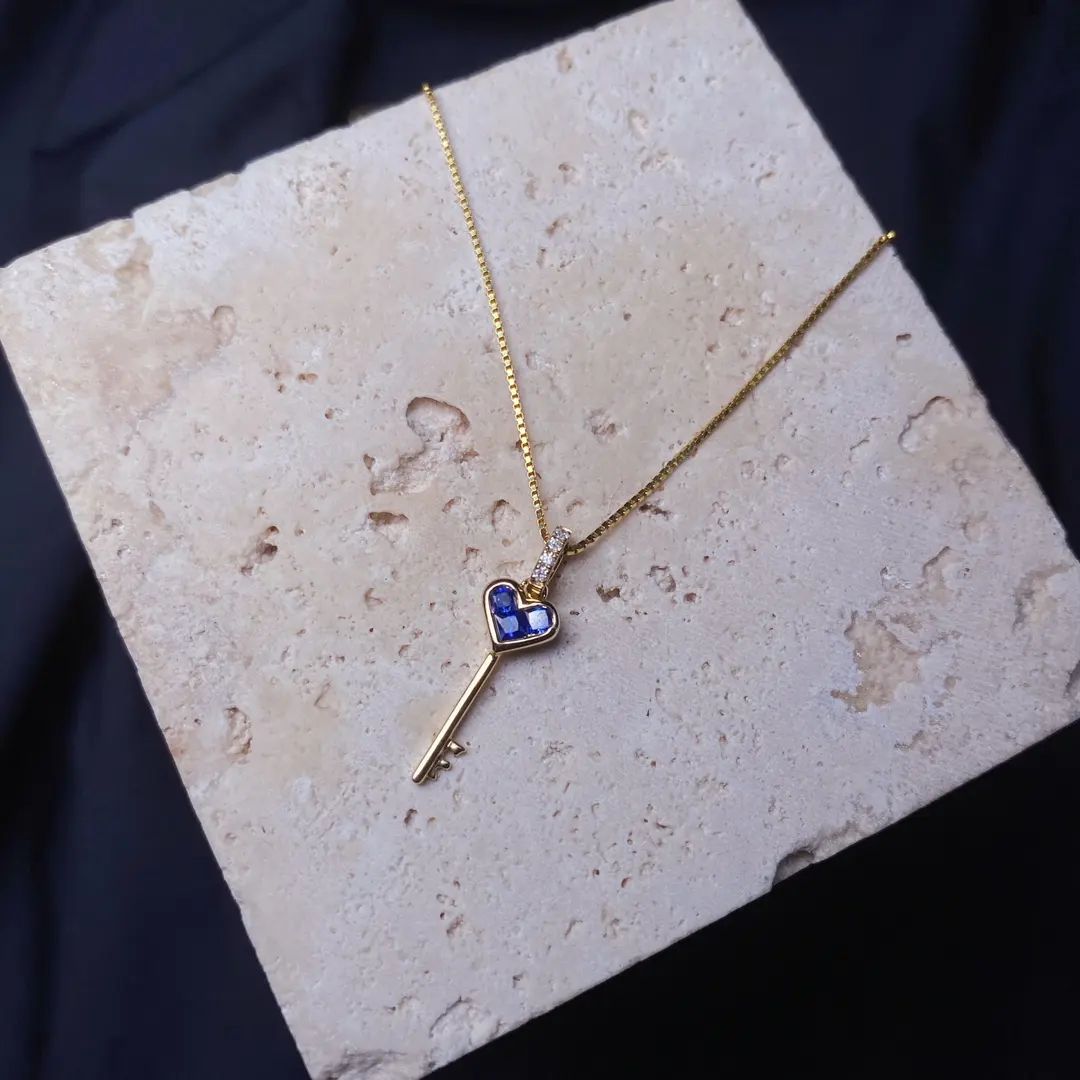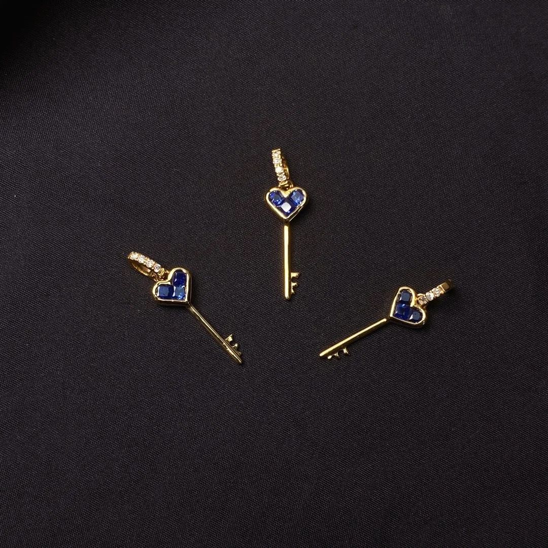 18k 金藍寶石鑽石鑲嵌 愛心吊墜