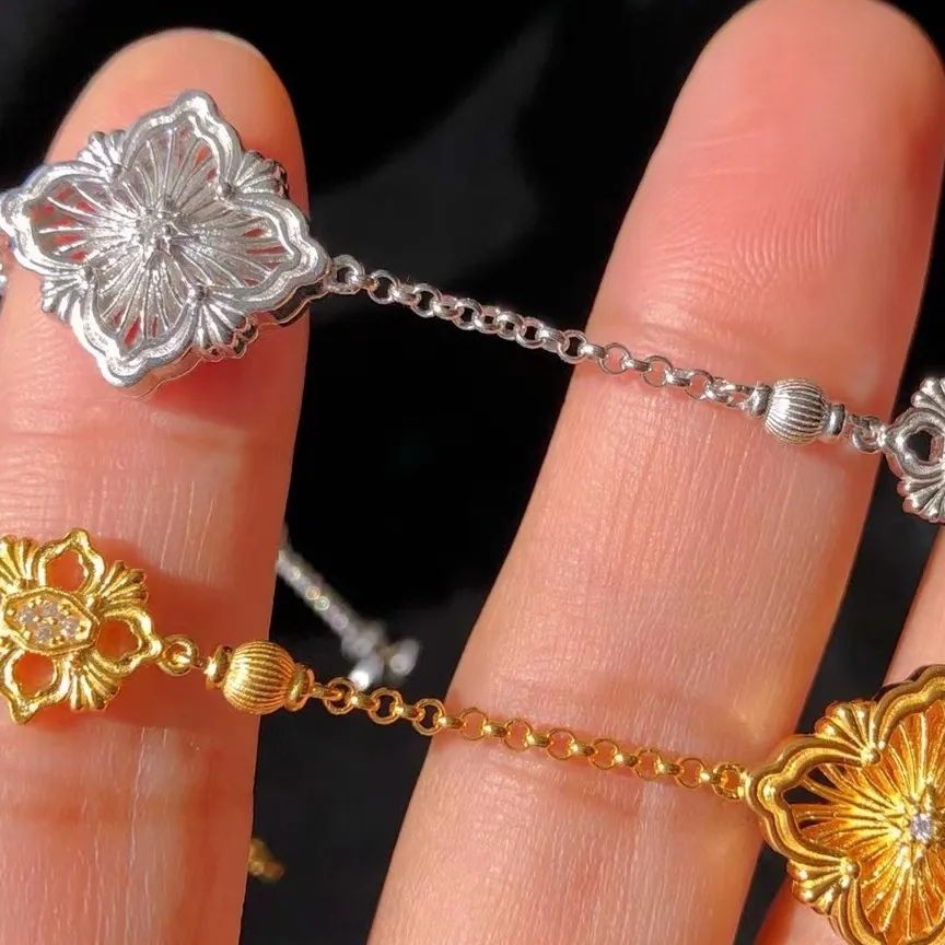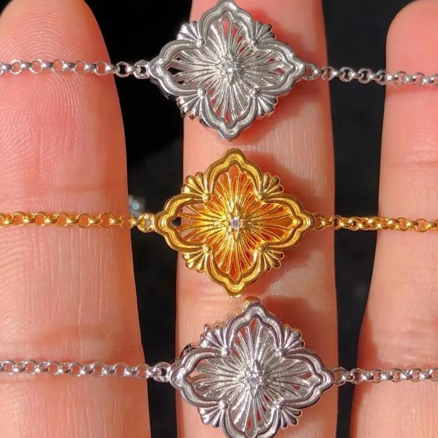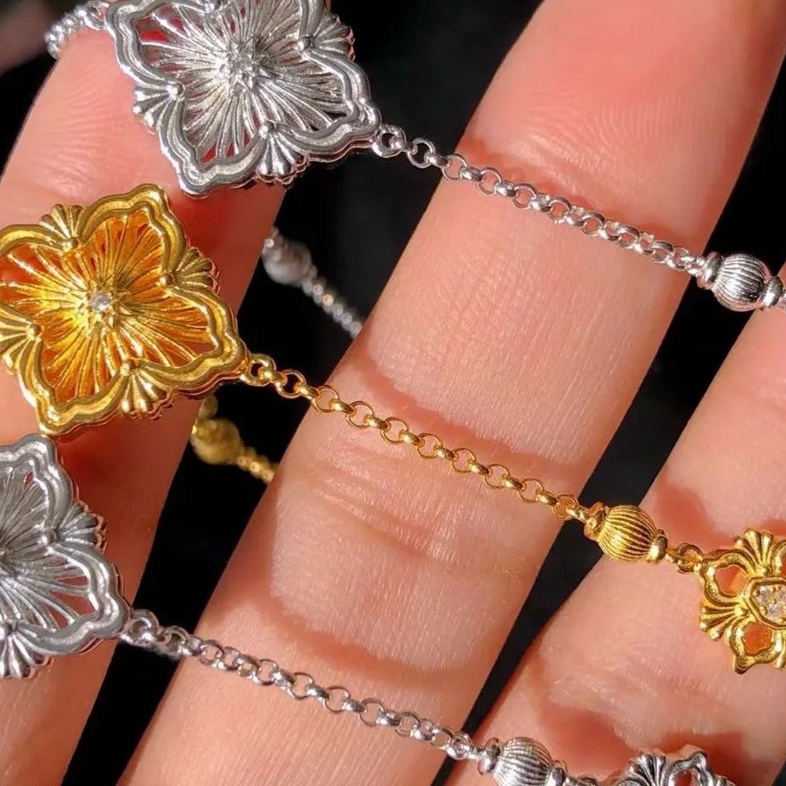 意大利工藝 BUCCELLATL 高級分色工藝系列 🙈~師傅巧手鑲嵌,有種高級珠寶嘅vintage感覺。😘😘 中環地鋪隨隨便便都會賣2xxx!識貨快啲入手,本店只售599! 925金鎏金拉絲四葉鏤空手鏈 925銀鎏金鑲嵌 實心 5老土。 意大利工藝分色設計。 手鏈16cm hkd$599 ~二色可選。 包順豐自提櫃自取。送閃靈鑽純銀耳釘(數量有限送完即止)