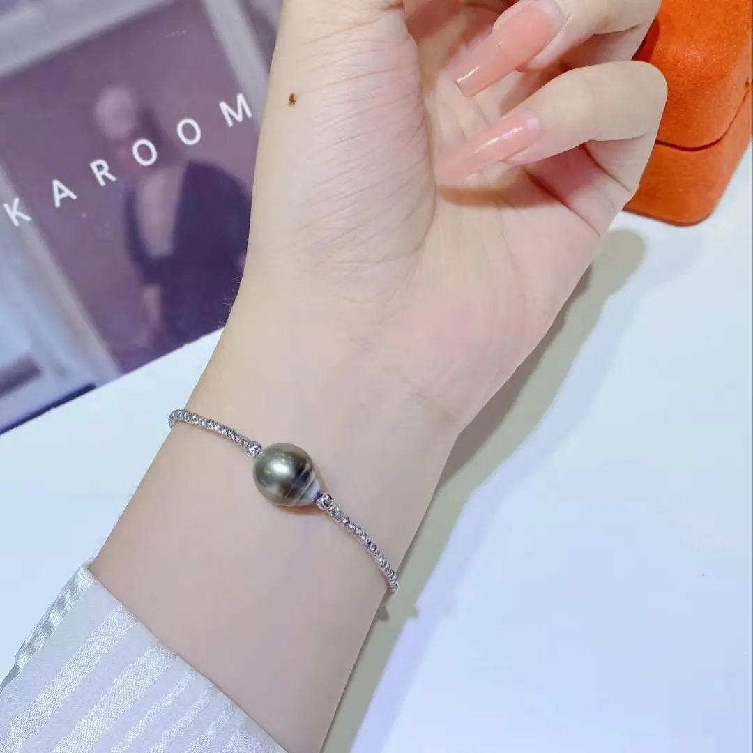 925銀鍍白金螺紋強光海水孔雀綠大溪地珍珠手鍊